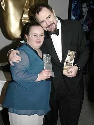 Cox junto a Paula Sage recibiendo el premio BAFTA | |